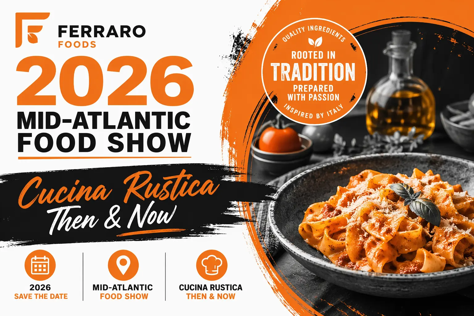 Join Ferraro Foods for the 2026 Mid-Atlantic Food Show | Cucina Rustica Then & Now, where Italian culinary tradition meets modern foodservice.