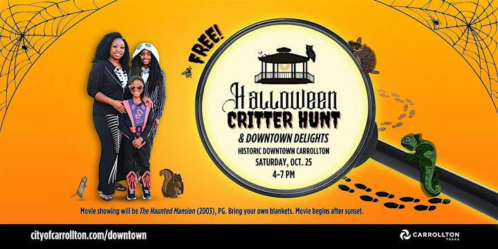 • Join us for a FREE and unforgettable Halloween experience in Historic Downtown Carrollton. Immerse yourself in a scavenger hunt looking for the Carrollton Critters in downtown, with trick-or-treating along the shops. Don't forget to stop by the photobooth station to snap some pictures with the family with silly props!